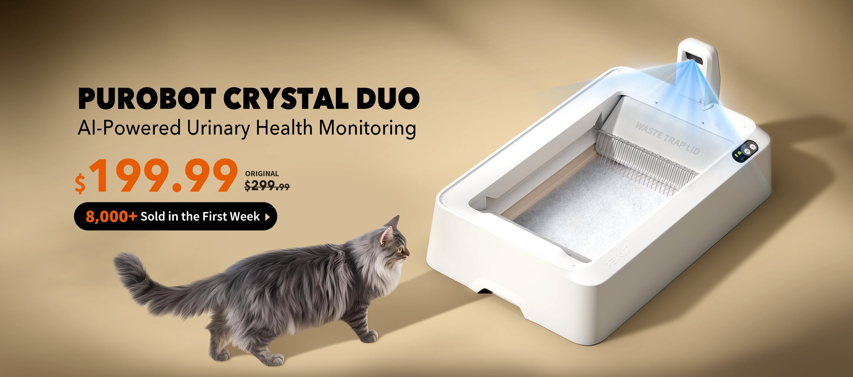 The 100% touch-free auto waste packing self-cleaning litter box with a 180° rotation AI camera to track cat's potty routines and well-being, offering holistic health insights from entry to exit.