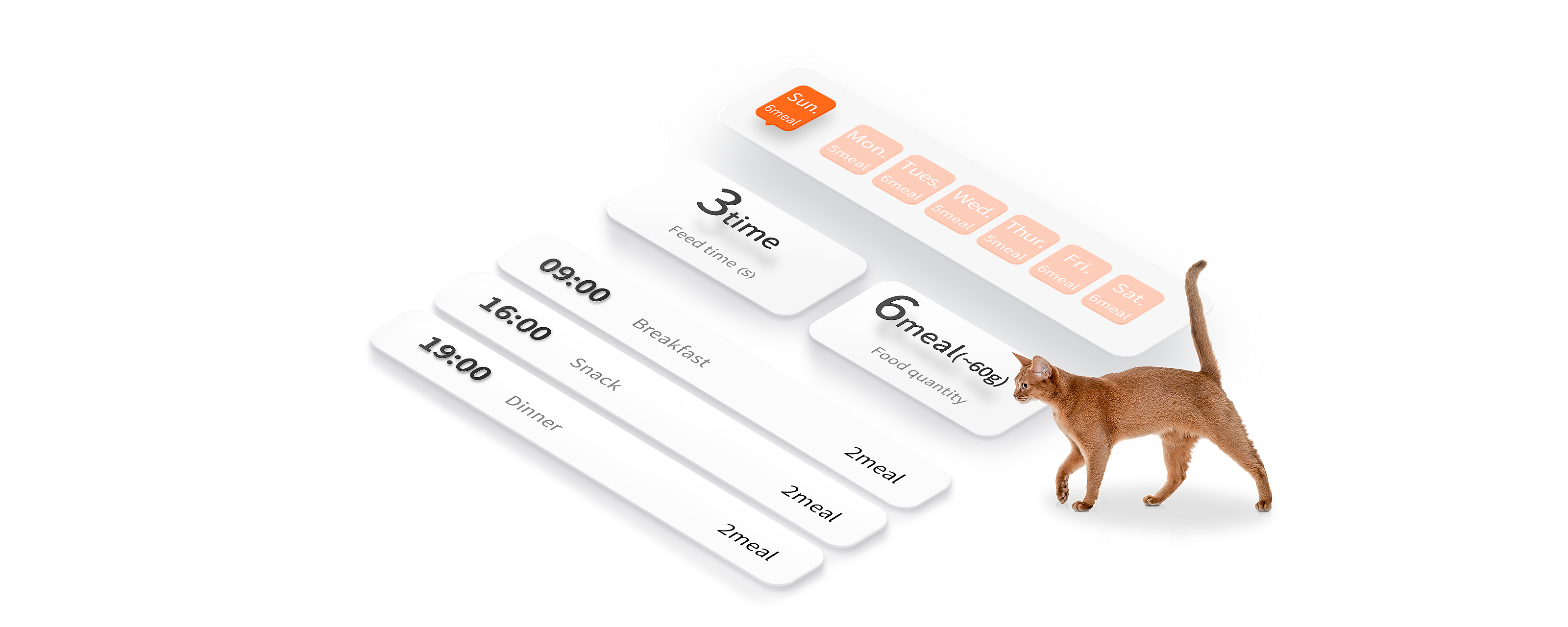 This feeder enables you to set up personalized feeding time and portions for your beloved pets. Precise portion control (up to 5 portions per meal) helps pets develop healthy eating habits. Extra feeding is also available on the app to meet dietary needs.