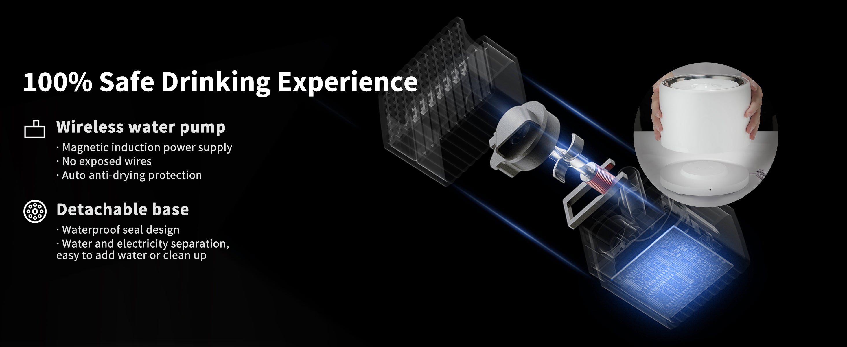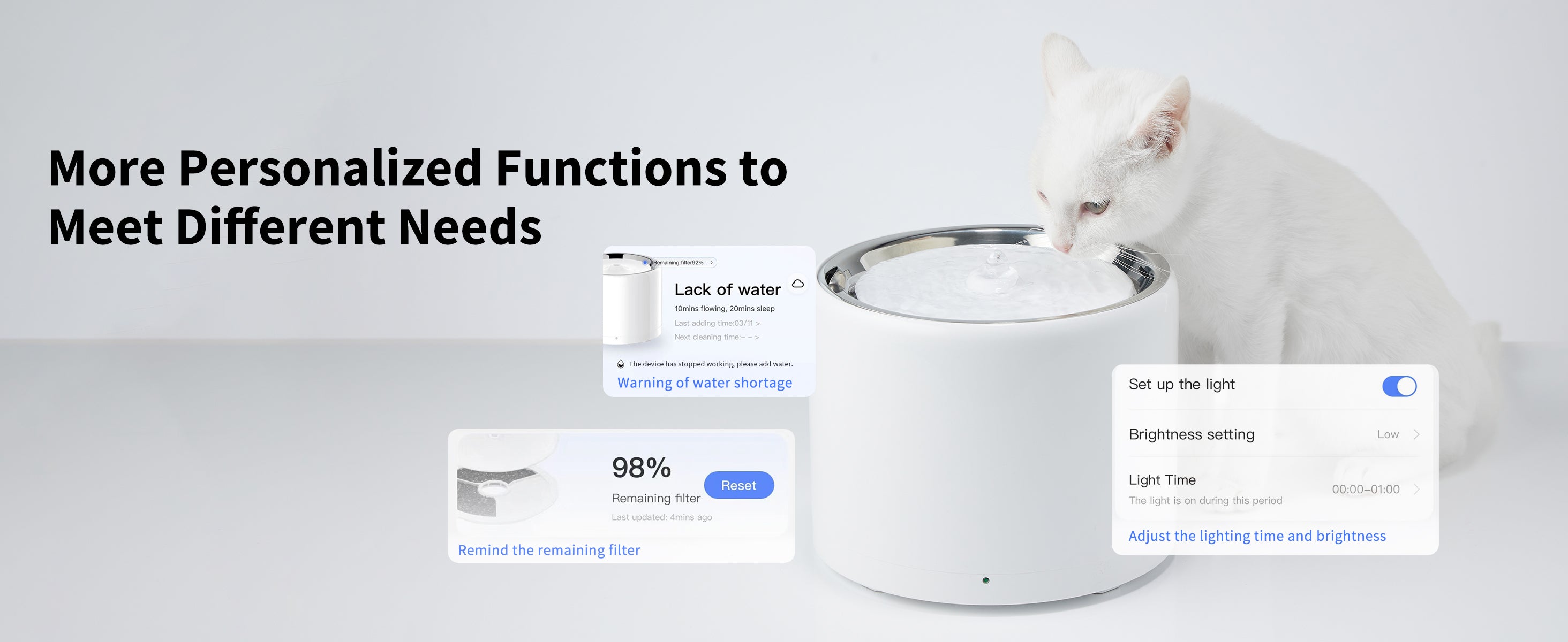 Eversweet 3 Pro keeps your pets healthy and hydrated with smart, hygienic design. Made from stainless steel, it features a wireless pump for safe, quiet operation and a multi-layer filtration system that removes impurities and odors. Connect to the Primegoodss App to adjust water flow and monitor status. Its detachable design ensures effortless cleaning and a constant supply of fresh, clean water.