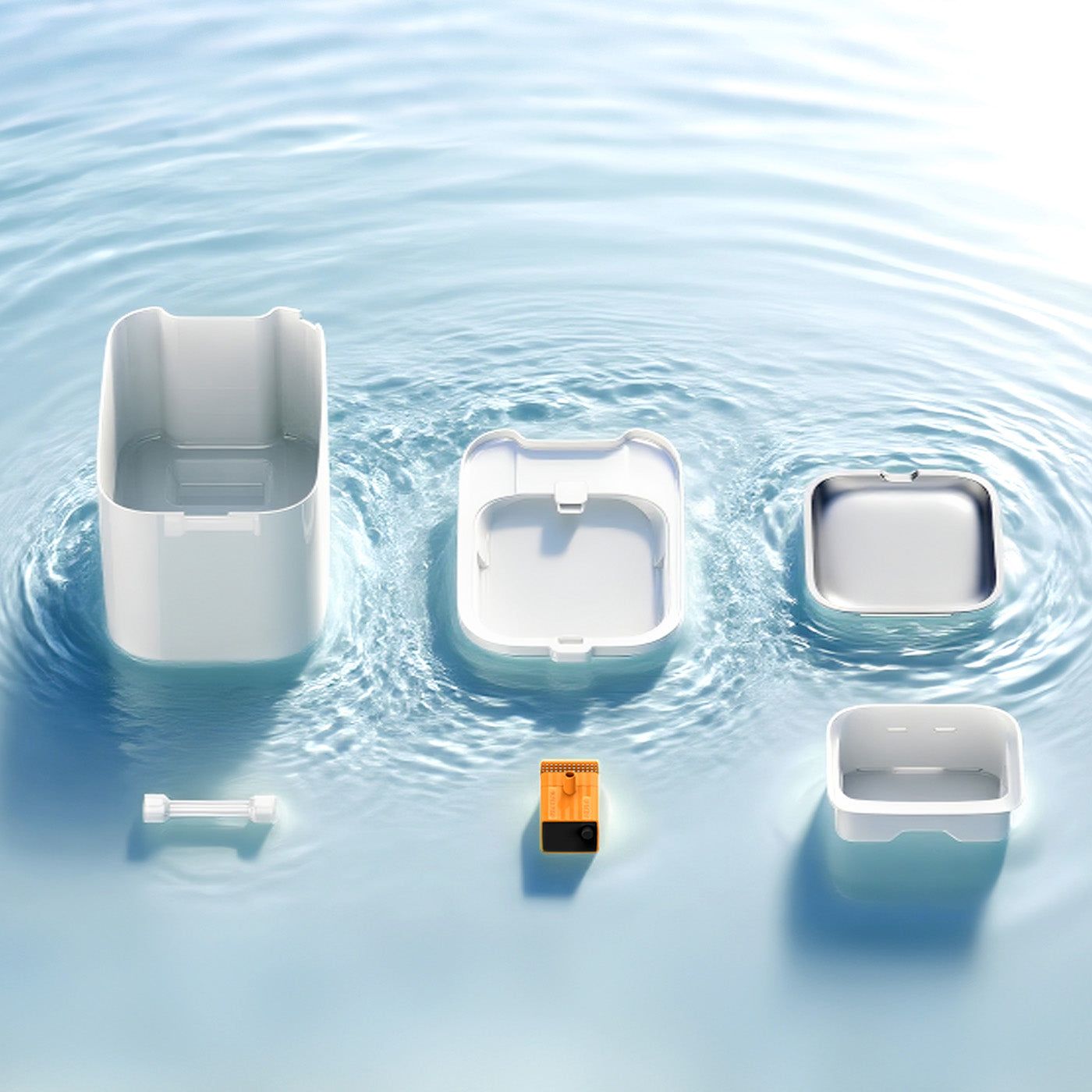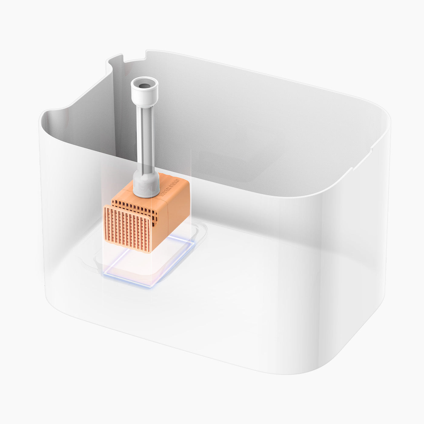 The water tray is made of food-grade 304 stainless steel, which naturally resists biofilm buildup and ensures hygienic, durable hydration. The water tank is made of food-grade ABS, combining safety with easy maintenance.