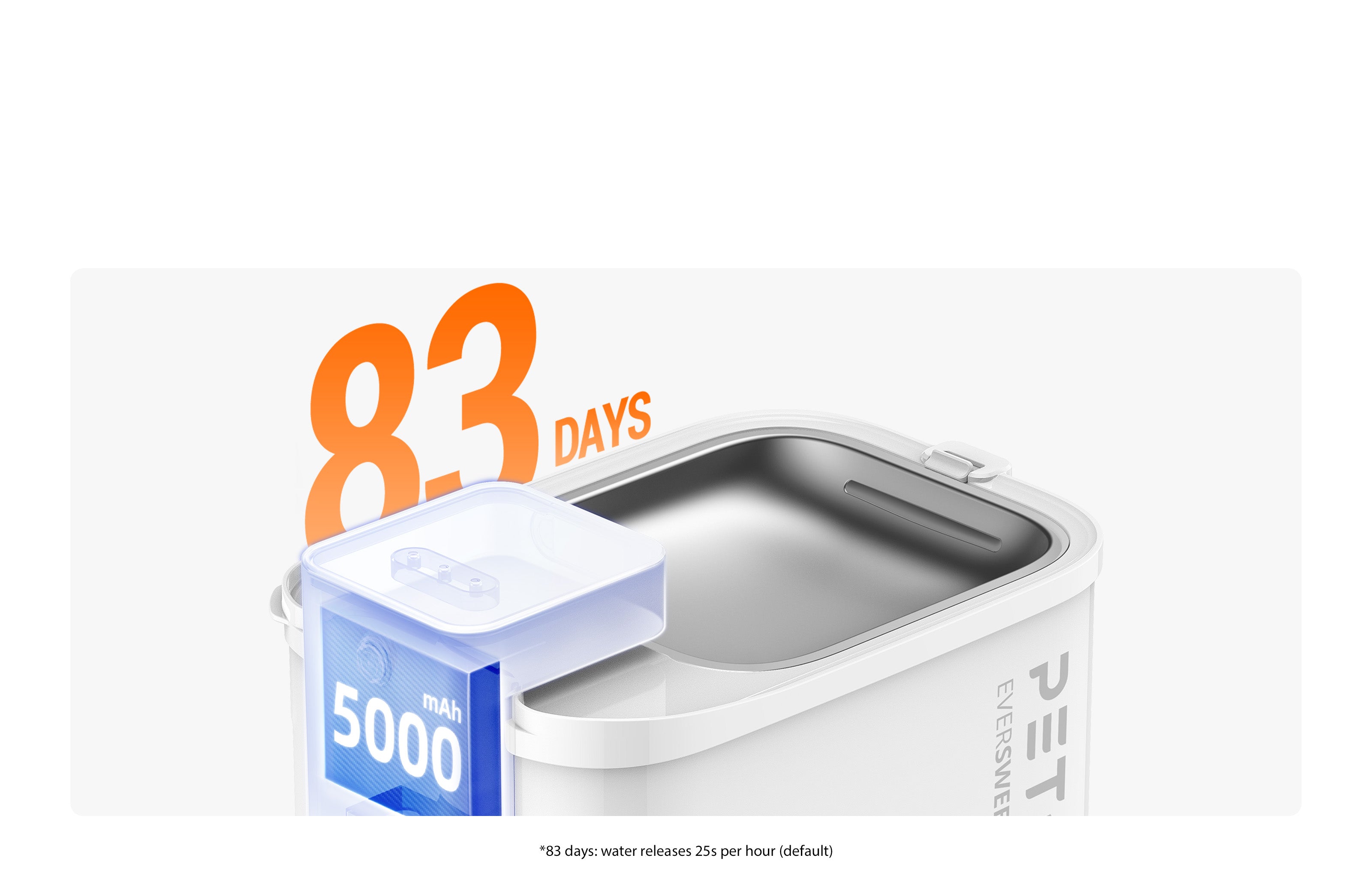 With large capacity of 101oz/3L, EVERSWEET MAX 2 (CORDLESS/UVC) can offer 1 cat hydrate fresh water for 2 weeks. Each pet's daily water intake is different, so the water refilling frequency will vary.
