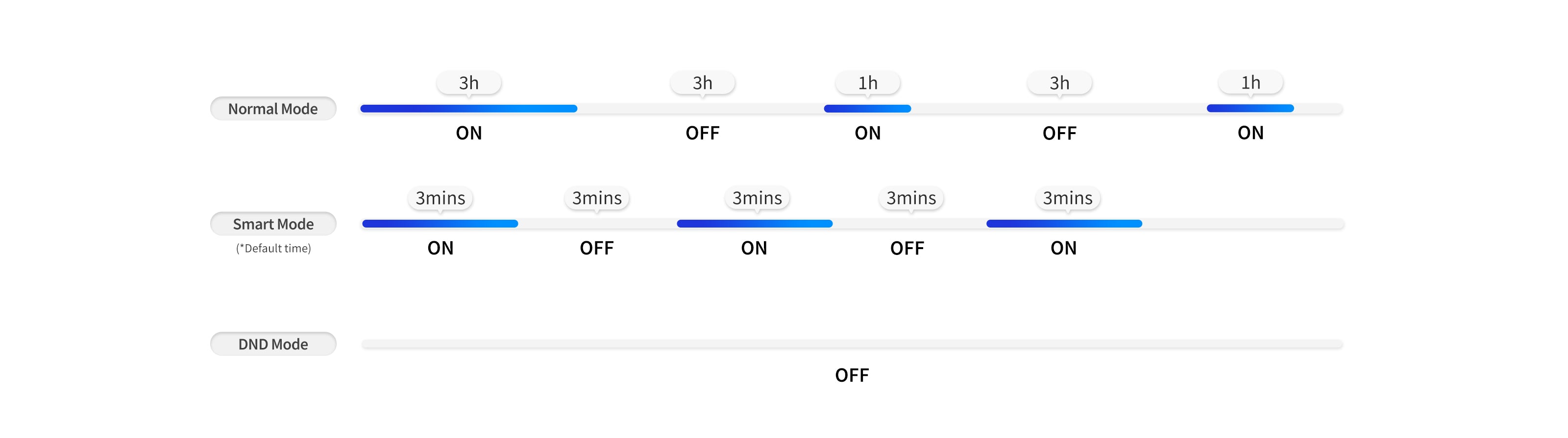 The working mode of sterilization depends on the water flow mode. In normal mode, sterilize for 3 hours first, then switch to intermittent sterilization: Sterilize for 1 hour every 3 hours. In smart mode, sterilization is synchronized with the on/off cycle of the water pump. In do-not-disturb mode, sterilization stops.